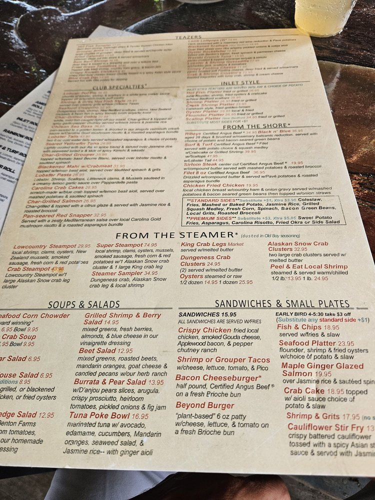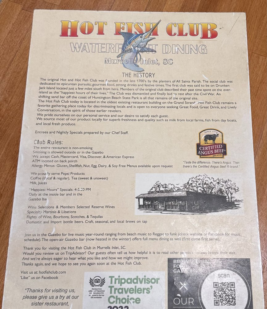 Hot Fish Club is a versatile dining experience, offering a mix of steakhouses, bars, and seafood options. Located in Murrells Inlet, SC, this women-owned establishment boasts a diverse menu with many vegetarian choices. With a casual yet classy vibe, Hot Fish Club provides wheelchair access, outdoor seating, and live music on select evenings. Standout dishes include the Lobster Pot Pie, Shrimp & Grits Hot Fish Style, and the Seafood Cioppino. Customer reviews rave about the impeccable service, delicious food, and vibrant atmosphere. Whether you're craving a seafood platter or a hearty steak, Hot Fish Club has something for everyone. The restaurant's dedication to quality and customer satisfaction makes it a must-visit spot for locals and tourists alike.